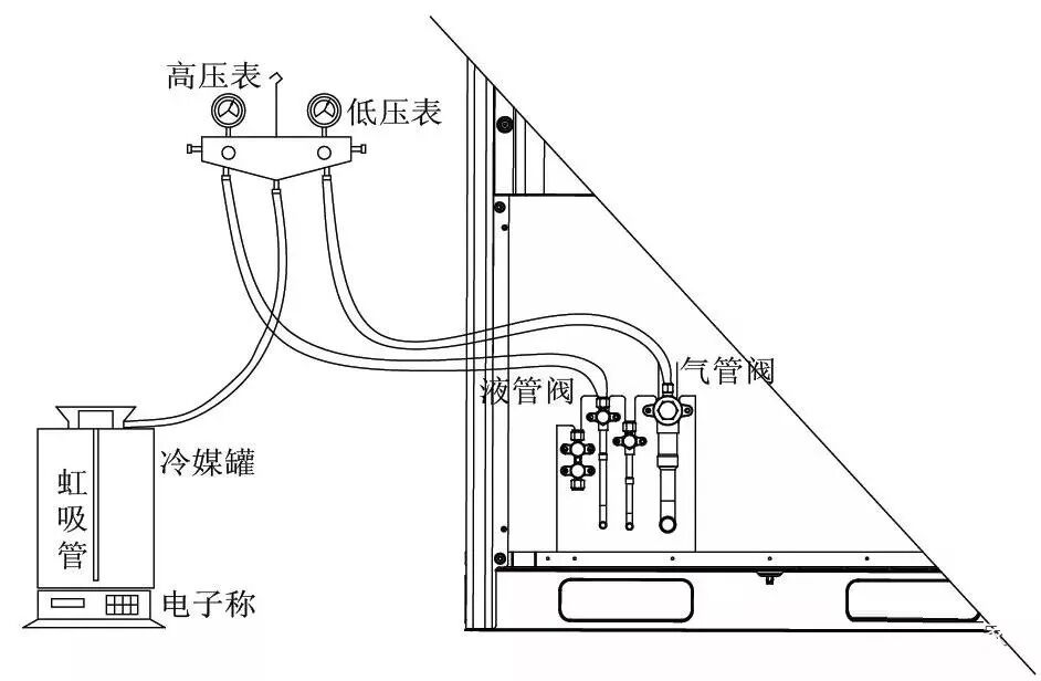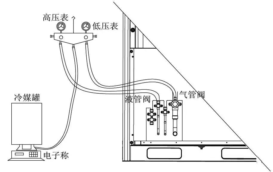 多联机制冷剂灌注充包括预灌注和开机灌注两部分。