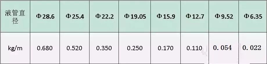 假定配管冷媒追加量A 为:A= Σ液管长度× 每米液管制冷剂追加量=5kg