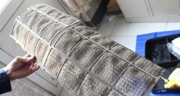 但其实,这只是洗净了外表,空调的肺——换热器还脏着呢~~现场做了实验,在空调出风口挂2条白毛巾,2小时过后你以为很干净的空调把毛巾吹成了这样▼