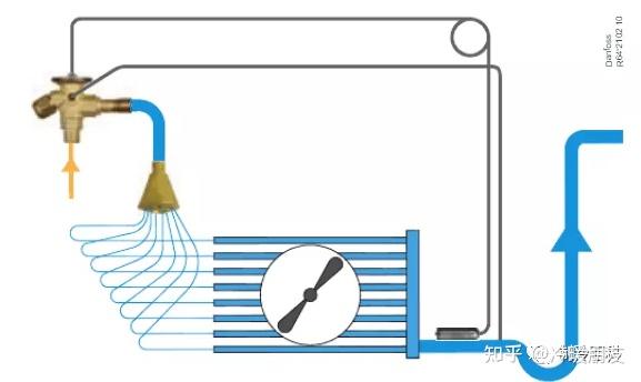 供液量不足的盘管内制冷剂很快蒸发,在出口产生较大过热度,换热面积没有得到有效利用。供液量过多的盘管内出口过热度很小,甚至带有未蒸发的液体,换热面积不足, 同时,蒸发器出口总管由于制冷剂的混合或再次蒸发,过热度低于理论值,过热度降低,对节流装置产生的信号是供液量过多,节流装置自行调节,以减少供液量;供液量减少,质量流量降低,分液效果更差,形成恶性循环;最终导致蒸发器有效面积急剧减少,制冷量下降,整个制冷系统运行性能恶化......