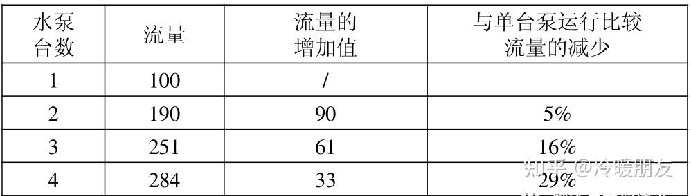 水泵并联运行时,流量会出现衰减现象;当并联台数超过 3 台时,衰减情况尤为明显。因此,在选用多台水泵时,必须考虑流量的衰减问题,并预留一定的余量。同时,空调系统中水泵并联不宜超过 3 台,在选择制冷主机时也应遵循这一原则。一般情况下,冷冻水泵和冷却水泵的台数应与制冷主机一一对应,并额外考虑一台备用泵。补水泵则一般按照一用一备的原则进行选取。