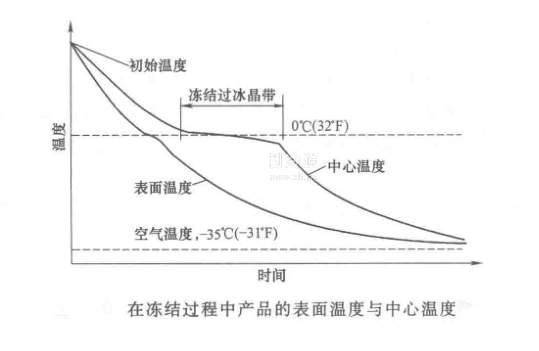 以上的两种计算法其实代表了现有的一些冻结模式,前一种方法是使用螺旋速冻机、速冻隧道等速冻温度比较稳定的速冻工况。按冻结的最终蒸发温度(比如说按-42~-40℃),选择对应的压缩机型号能满足的情况下,一般采用的蒸发温度计算是-33~-30℃,即按已经选择的压缩机在-33~-30C的工况下对应的负荷,来确定低压循环桶的负荷以及冷凝负荷。而后一种冻结模式代表采用直接接触速冻工具,如平板速冻机、浸泡冻结等方法。压缩机的选择是按前面一种方法,但是蒸发温度和冷凝负荷计算,是按冻结产品过冰晶点的温度进行的。而传统的速冻间冻结,所选择的冷凝负荷是在前面提到的这两者之间,这是在实践中采用的方法。