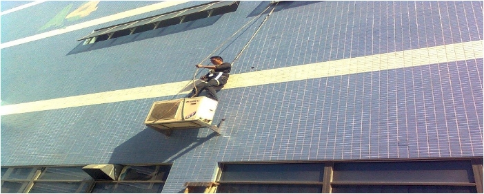 1.空调室外机箱清理之水流冲洁: