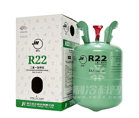 R22制冷剂是氟里昂制冷剂中应用较多的一种,主要以家用空调和低温冰箱中采用。R22的热力学性能与氨相近。标准气化温度为-40.8°℃,通常冷凝压力不超过1.6MPa。R22不燃、不爆,使用中比氨安全可靠。R22的单位容积比R12约高60%,其低温时单位容积制冷量和饱和压力均高于R12和氨。近年来对大型空调冷水机组的冷媒大都采用R134a来代替。