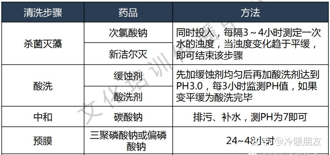另外还有一种常用的方法----化学酸洗除垢。化学酸洗除垢方法适用于立式和卧式壳管式冷凝器(钢管)。除垢过程中必须停止冷凝器的正常运行,以确保安全。