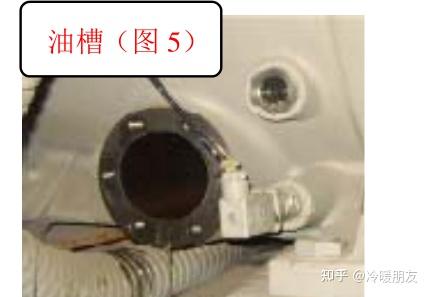 第5步:清洗油槽和油过滤器(图 5) , 打开油槽盖子用干燥的纱布清洗油槽纱布脏后用倒出的废冷冻油投细纱布, 取出油槽内的两块磁铁清洗后再放回油槽内。用大扳手拆开油过滤器用废油清洗。