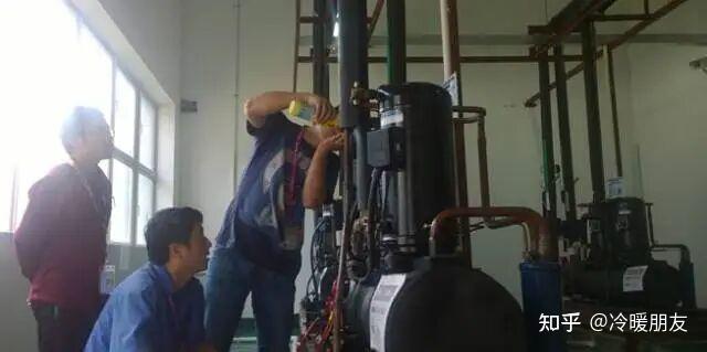 13、定期检查制冷机组的各连接管、阀件上的连接管是否牢固,是否有制冷剂渗漏(一般渗漏的地方会出现油迹)。