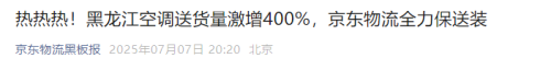 据“京东物流黑板报”官方消息,受持续高温天气及国家家电补贴政策影响,黑龙江省空调市场迎来爆发式增长。京东物流数据显示,6月24日至今,黑龙江空调送货、安装订单量较去年同期增长超300%,其中7月4日较去年增长400%,达到历史峰值。为应对订单激增,京东物流哈尔滨大件家电仓全量调货,并从济南、沈阳、北京等地紧急调拨空调商品,优先保障哈尔滨、大庆、齐齐哈尔等热销城市供应。同时,哈尔滨大件仓新增专业卸车队伍,扩大卸货通道,增派200余名支援人员,开设夜班专班实现24小时不间断作业,分拣环节开通“绿色通道”缩短时间。末端服务环节增投近四成人员,针对老人、孕妇、病患及学校订单优先安排,缩短等待时间。