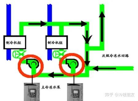 冷冻泵用于完成冷冻水在系统中的循环。在冷冻水的循环系统中,经过制冷后变成一定温度的冷冻水从制冷机组流出(出水),由冷冻泵送到各楼层、房间,流经各房间并进行热交换后,回到制冷机组(回水),并如此反复循环。